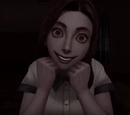 When looking at the book on the table, she appears at the opposite side, smiles, then distorts her face to a horrifying grimace before attacking the player.