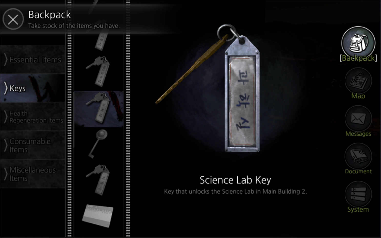 Science Lab Key( Also known as Science Room Key ) is an item in White Day: ALNS And Remake.