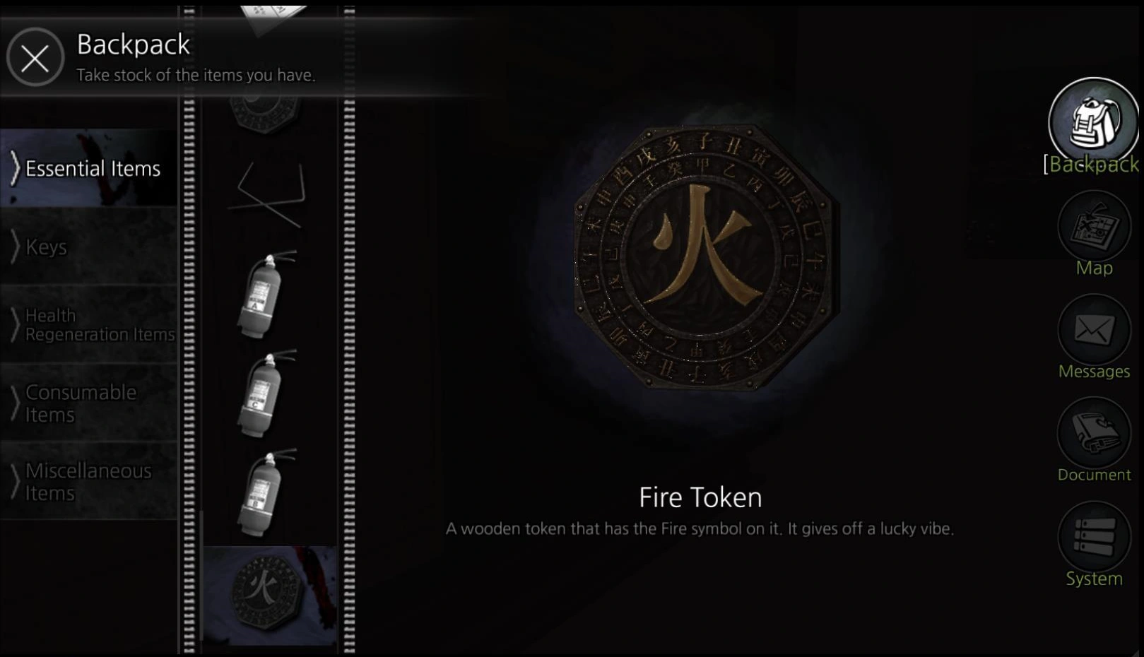 The Talismans also known as Tokens (Remake) and Amulets (Hangul: 부적 ), are major plot important key items in White Day: A Labyrinth Named School. They are based on the The Five Elements and created from peach tree wood. They were designed to balance Qi energy around Yeondu High School and were created by a geomancer.